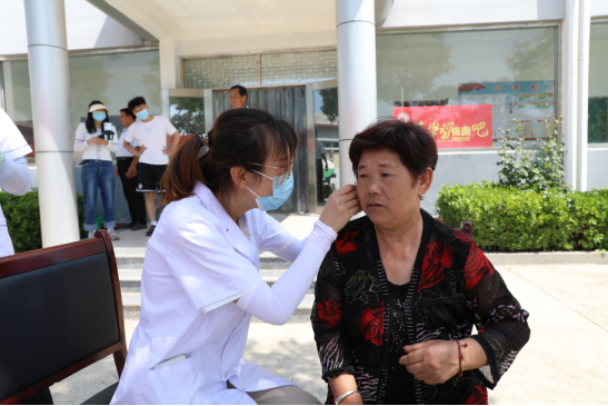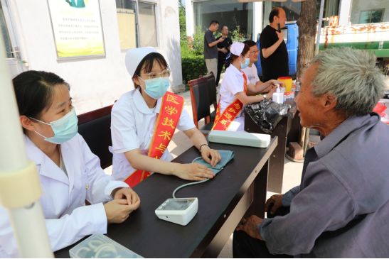 在村委大院,“送医下乡”志愿服务队的师生们现场为村民测量血压、血糖,还进行了耳穴压豆、推拿按摩等服务,同时还向村民宣讲预防糖尿病、高血压等慢性疾病的医学知识,对村民的健康状况进行评估并给予合理化建议。通过志愿宣传,提高村民的疫情防范意识,更好地推动疫情防控工作的开展。