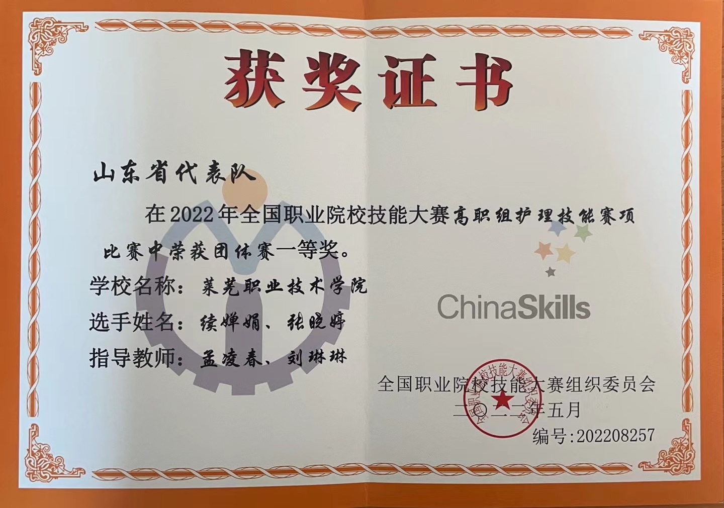 比赛中,医学技术与护理系2名参赛选手续婵娟、张晓婷沉着应对,操作娴熟专业,团队配合默契,最终斩获国赛一等奖,展现出了莱职学子精益求精的工匠精神,全面展示了新时代护理技能人才的竞技风采。