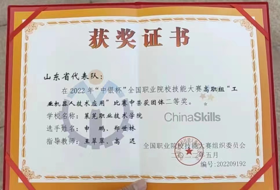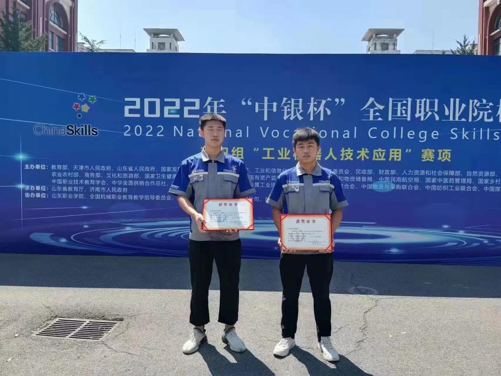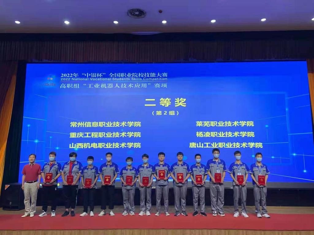 8月26日,学校机电工程系参赛选手申鹏、郑世林获2022年“中银杯”全国职业院校技能大赛高职组“工业机器人技术应用”赛项二等奖。