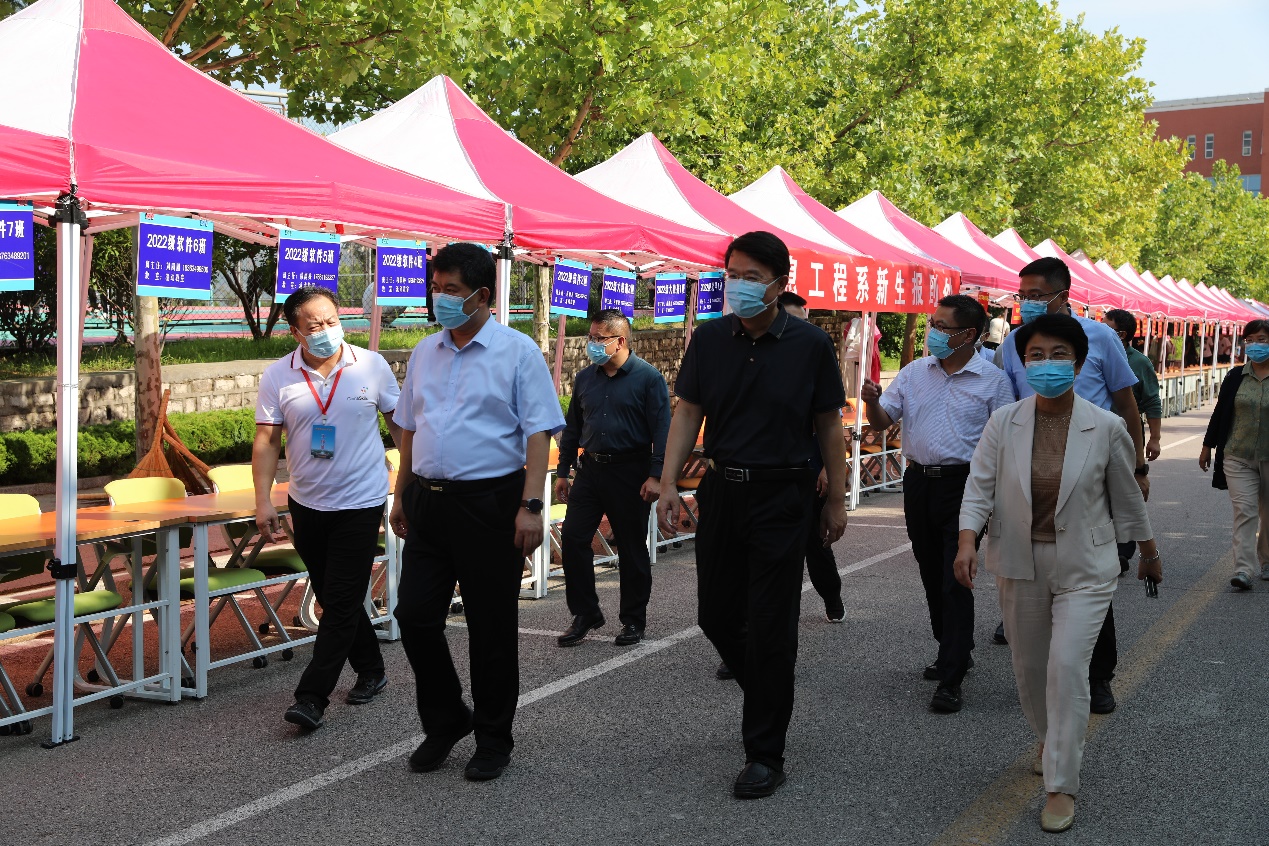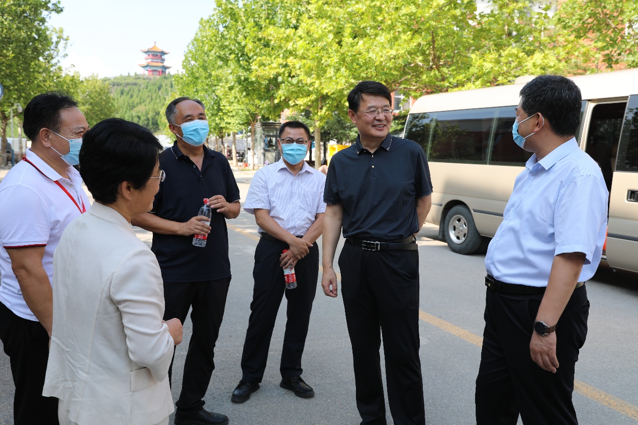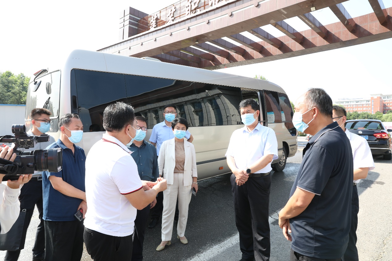 孔祥敏向于炳基一行介绍了学校疫情防控工作人员安排、物资储备、应急处置方案、新生健康信息摸排、防控措施落实等情况,魏广舜介绍学校疫情防控落实情况,并介绍学校新生报到流程。