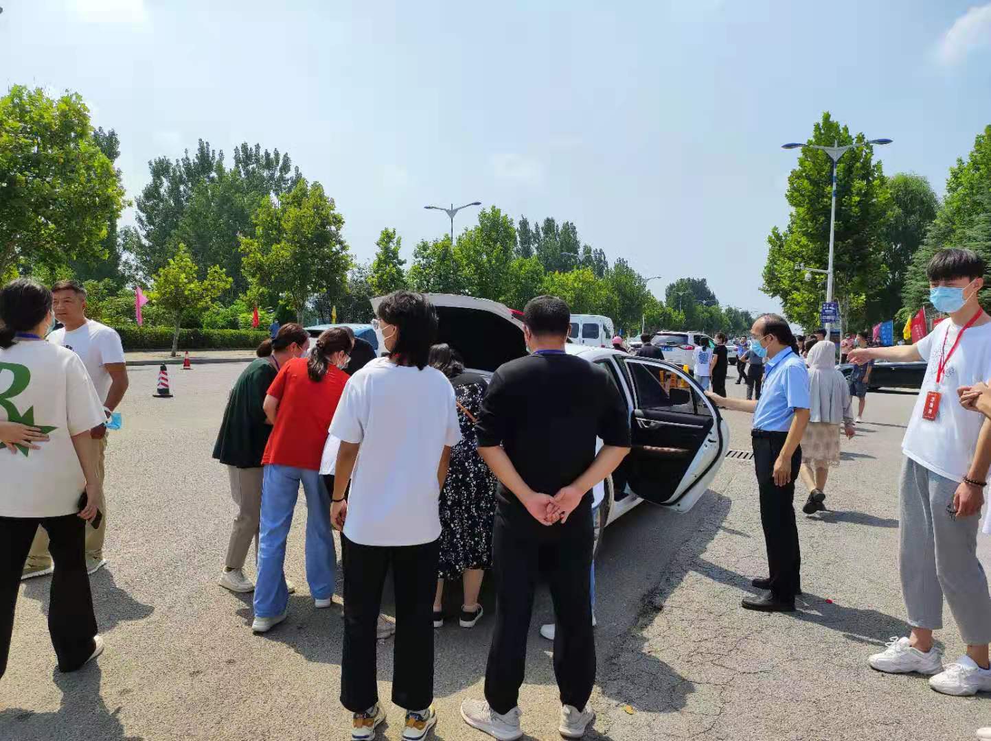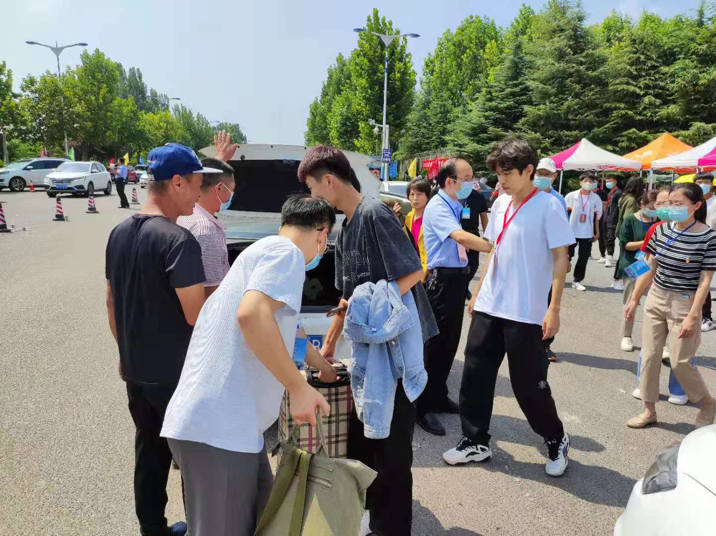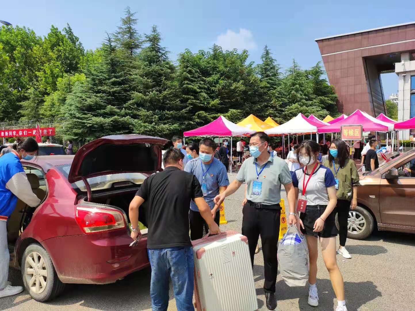 广大机关党员干部有的协助新生搬运行李、有的帮助协调车辆停放、有的为家长和学生答疑解惑,展现了学校广大党员、干部优良的工作作风和精神风貌。
