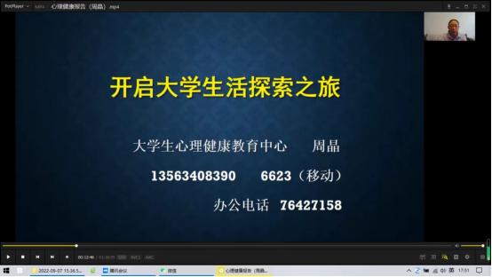 为使2022级新同学更好地适应大学生活,顺利开启学习生活之旅,9月7日下午,党委学生工作部组织开展了一场线上心理健康讲座,给全体新生送上了守护心灵的“健康秘笈”。