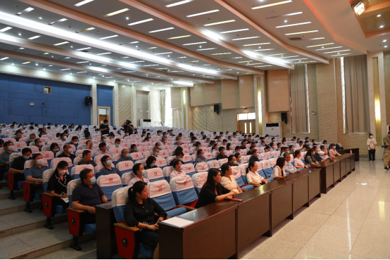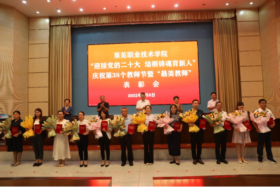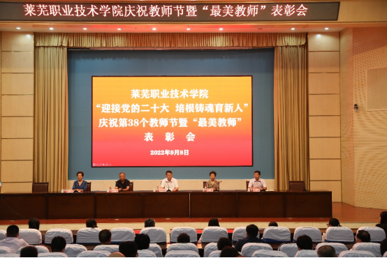 9月8日下午,第38个教师节来临之际,为集中展现广大教职工爱党爱国、立德树人、自信自强的精神风貌,营造尊师重教、爱岗敬业、强技专能的良好氛围,学校召开“迎接党的二十大 培根铸魂育新人”庆祝教师节暨“最美教师”表彰会。学校领导班子成员出席会议,各单位中层副职以上负责人、教师代表和学生代表共计200余人参加表彰会。党委书记孔祥敏在会上讲话,副院长李允实主持会议。