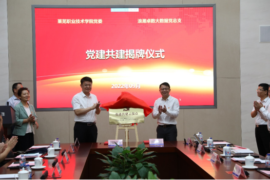 参观结束后,双方举行了党建共建业务座谈会。孔祥敏在讲话中指出,学校始终坚持把党的建设摆在首位,坚持围绕中心、服务大局,把党建引领贯穿办学治校全过程,坚持党建工作和业务工作同谋划、同部署、同落实。实施“党建+教师队伍建设”工程,打造一流教师队伍;实施“党建+人才培养”工程,育人质量持续提升;实施“党建+社会服务”工程,推动产教融合创新发展,真正做到以高质量党建引领高质量发展。他表示,学校将借助与浪潮集团党建共建的机遇,坚持和加强党的全面领导,全面深化党建合作,打造互融互促工作平台,共同促进双方党建工作创新、做实、走强,锚定“走在前列、全面开创”“三个走在前”总遵循、总定位、总航标,以优异成绩迎接党的二十大胜利召开,为新时代现代化强省会建设贡献新的智慧和力量。