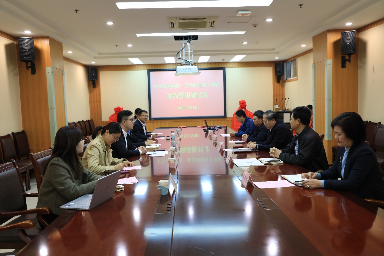 徐运国从专业设置、人才培养、招生就业等方面对学校进行了介绍。他指出,学校积极贯彻党和国家关于实施乡村振兴战略的决策部署,扎根齐鲁大地办教育,主动对接国家省市重大战略,不断深化产教融合,提升校企合作水平,与产业发展同向同行、同频共振,在新时代社会主义现代化强省建设进程中展现了莱职担当、贡献了莱职力量。他强调双方要在科研创新、教育教学、企业实践、员工培训等方面深度推进校企合作,助力产业转型升级和区域创新发展,为乡村振兴事业贡献更大力量,赢得更大荣光。