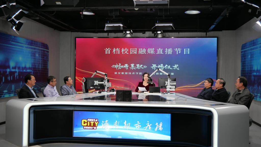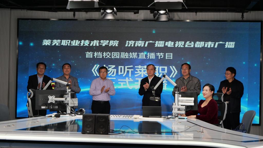 10月18日上午,由学校与济南都市广播联合推出的首档校园融媒直播节目《畅听莱职》在济南都市广播演播室举行开播仪式。学校党委副书记、院长徐运国,党委副书记毕玉海,济南广播电视台党委委员、副台长隗铜,党委委员魏传杰出席开播仪式。学校党政办公室、党委宣传部、党委学生工作部(团委)及济南都市广播相关负责同志参加活动。