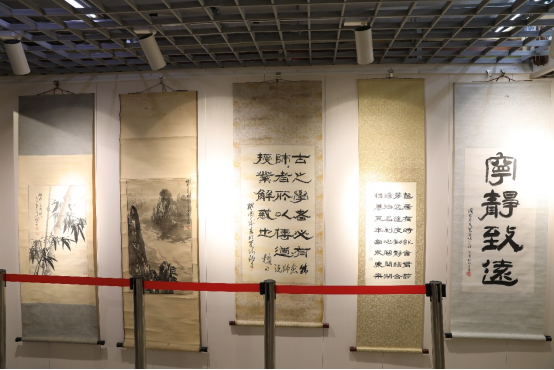 本次展览展出杜老作品57幅,贺展书画作品40幅,还有大量杜伯奇先生手稿、印章、砚台、刻石、照片和各界人士的回忆文章。齐鲁书画家协会主席自牧、山东大学书画研究院院长王培元分别向杜伯奇先生亲属赠送书法作品。书画展展期11月6至11月30日。