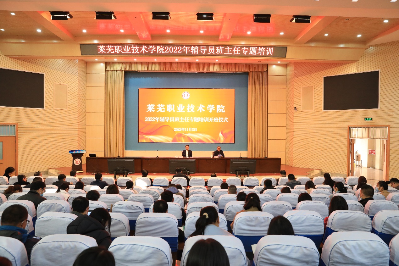 为进一步加强学校辅导员、班主任队伍建设,全面提升育人工作水平,打造一支政治过硬、信仰坚定、高质量、高水准的高校学生管理队伍,2022年辅导员、班主任培训班于11月5日至6日在学校图信中心报告厅举行。党委书记孔祥敏出席开班仪式并讲授开班第一课,副院长魏广舜主持开班仪式,各系主要负责人以及学校320余名辅导员、班主任参加培训。