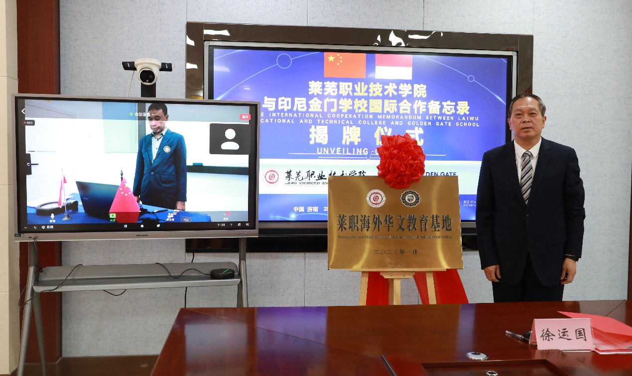 签约仪式上,徐运国与巴克里共同为莱职海外华文教育基地揭牌,助力两国中文学习。