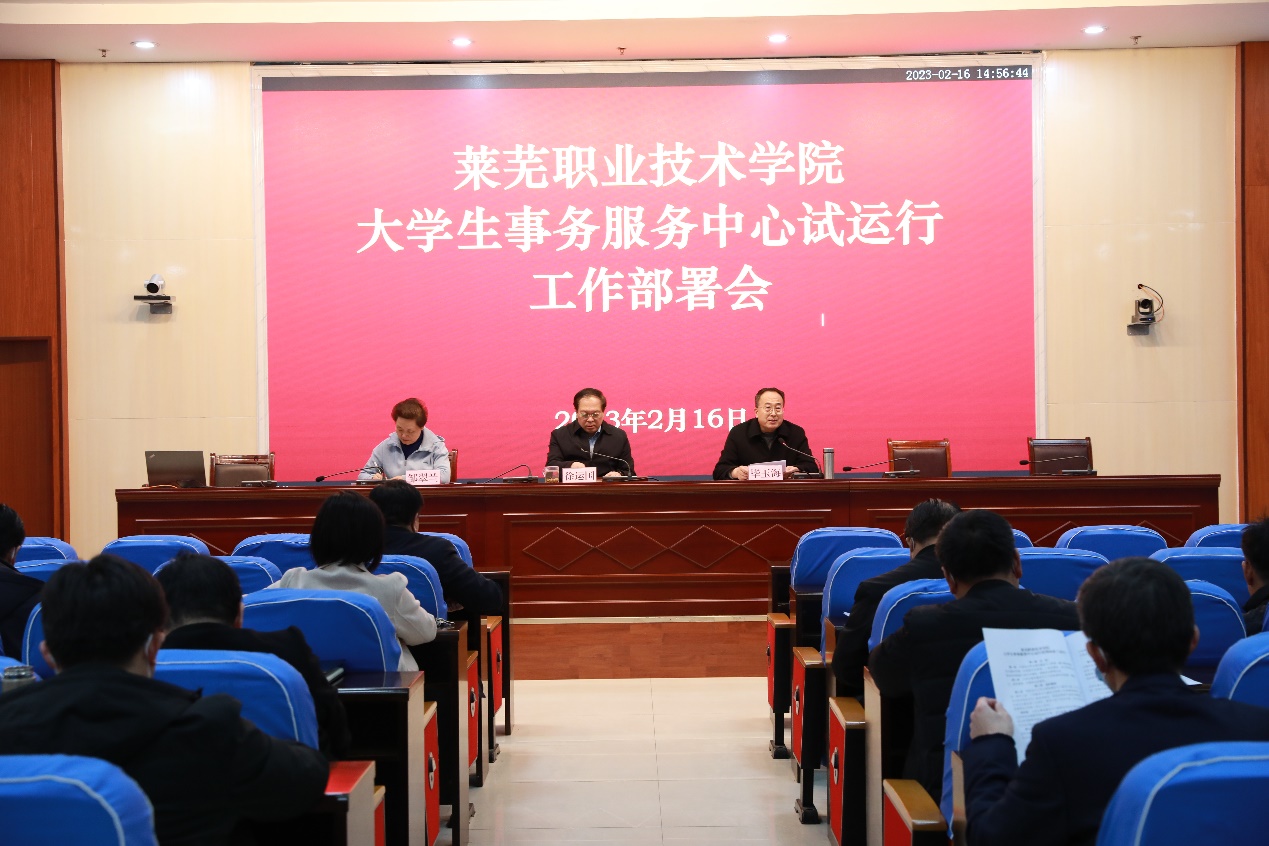 为规范大学生事务服务管理,提升服务质量,优化服务环境,实现集中式受理、一站式服务,2月16日下午,学校召开大学生事务服务中心试运行工作部署会。党委副书记、院长徐运国,党委副书记毕玉海,副院长邹翠兰出席会议,各单位主要负责人和相关工作人员参加会议。会议由毕玉海主持。