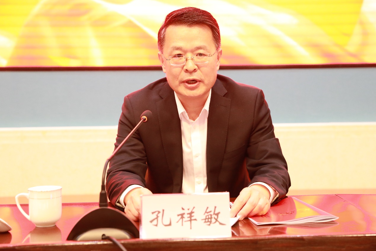 孔祥敏全面回顾总结了2022年学校办学取得的成就。他指出,2022年是极不平凡的一年,全校上下牢牢把握立德树人根本任务,深入学习贯彻党的二十大精神,全面贯彻新发展理念,积极构建新发展格局,高效统筹疫情防控和学校发展,在交织叠加的困难挑战中,交出了更有温度、更加厚实的高质量发展新答卷。过去一年,学校高举旗帜、锐意进取,党建引领坚强有力;精准施策、周密部署,疫情防控扎实有效;铸魂强技、立德树人,人才培养又攀高峰;潜心钻研、促进转化,科研工作再创佳绩;聚焦需求、深度融合,社会服务提质增效。