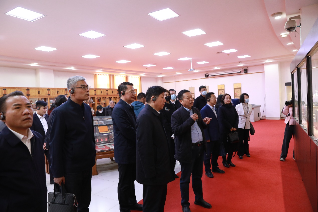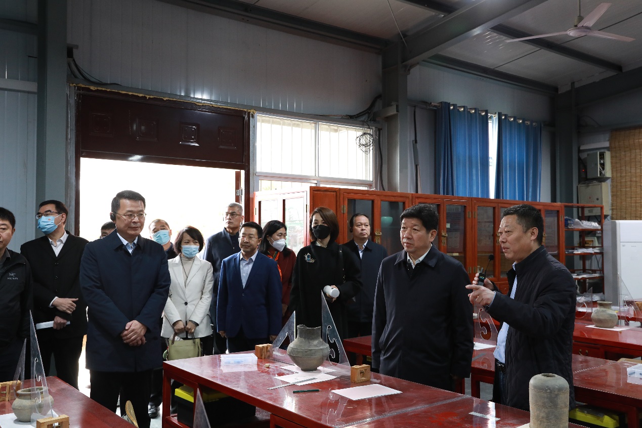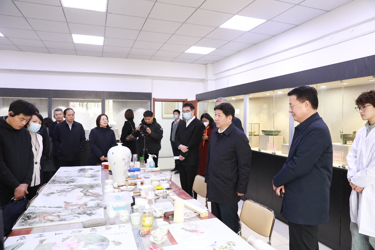 仪式开始前,在孔祥敏、徐运国陪同下,各位专家顾问实地考察学校文物修复与保护实训室。