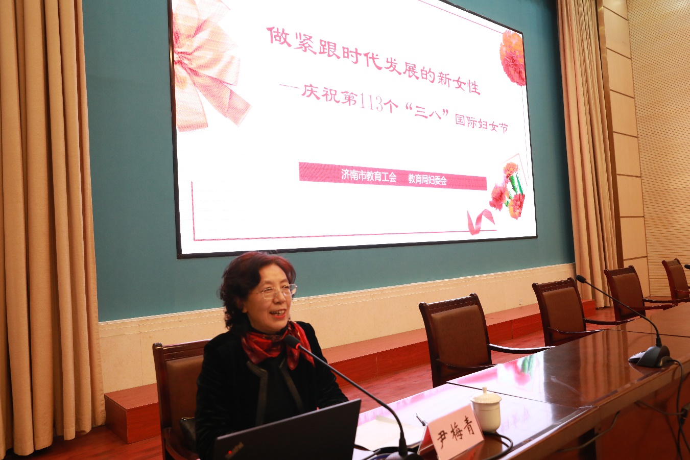 为庆祝“三八”国际劳动妇女节,丰富女教工生活,增强女教工凝聚力,3月7日下午,学校工会组织开展庆祝“三八"国际劳动妇女节暨“魅力 感染力 幸福力”女教工素质提升培训活动启动仪式,学校党委副书记毕玉海致辞,济南市教育工会主席尹梅青作报告,学校工会主席苏有刚主持,学校全体女教工参加培训。
