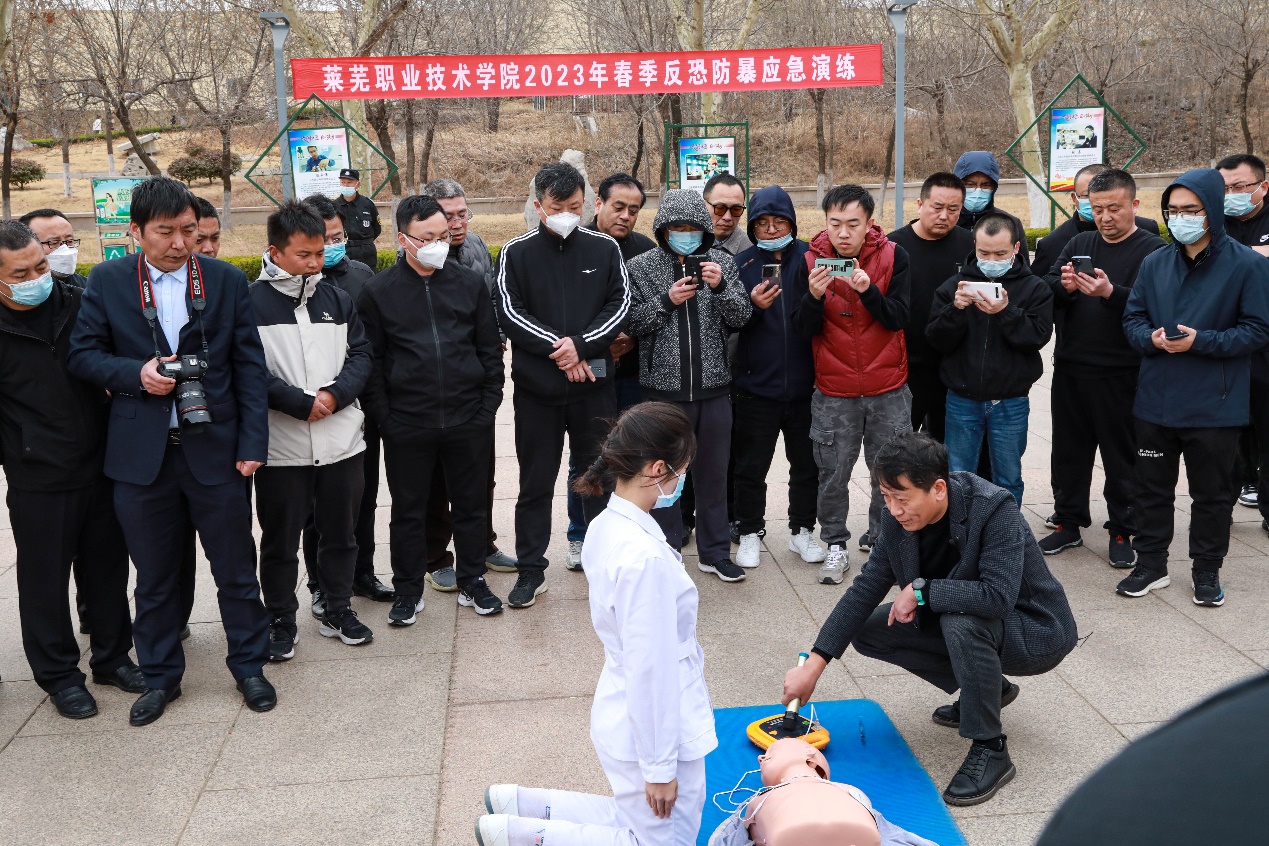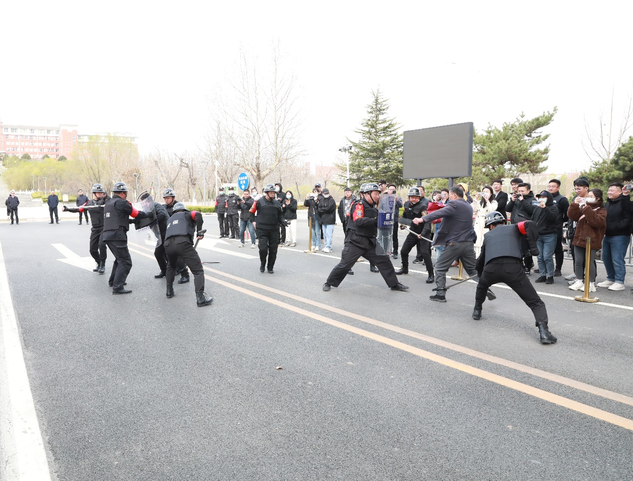 为切实维护校园安全稳定和师生安全,有效预防和处置各类突发事件, 全力打造安全稳定、和谐有序的校园环境,3月11日下午,学校组织2023年春季反恐防暴应急演练。副院长魏广舜出席活动,济南市长清区教体局所属学校校长和安全保卫负责人现场观摩应急演练。