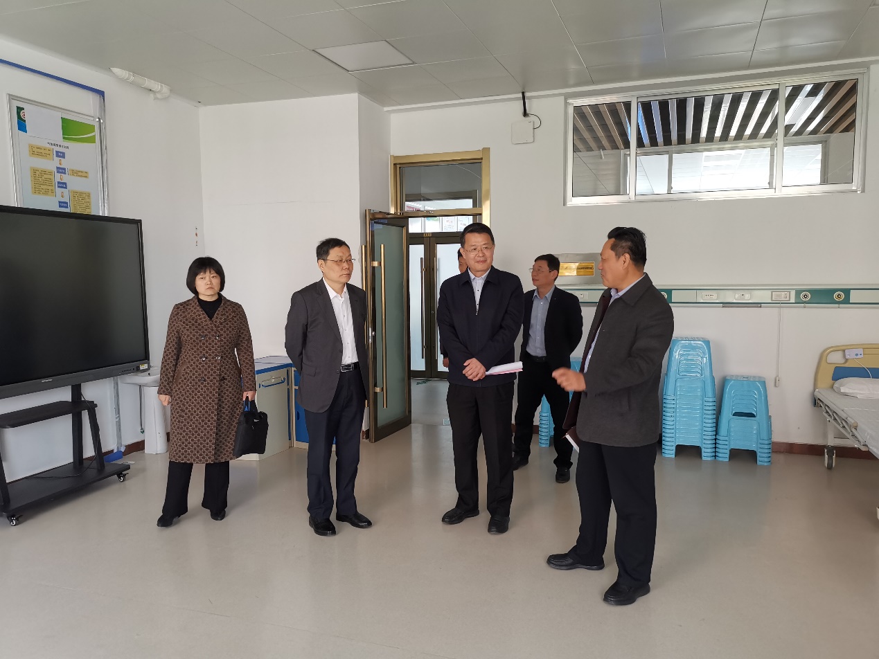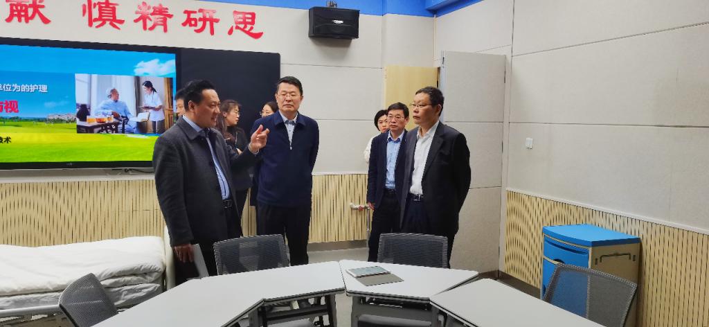 座谈会后,在孔祥敏陪同下,顾润国一行参观学校初心馆、明德园和医学技术与护理系实验实训中心。
