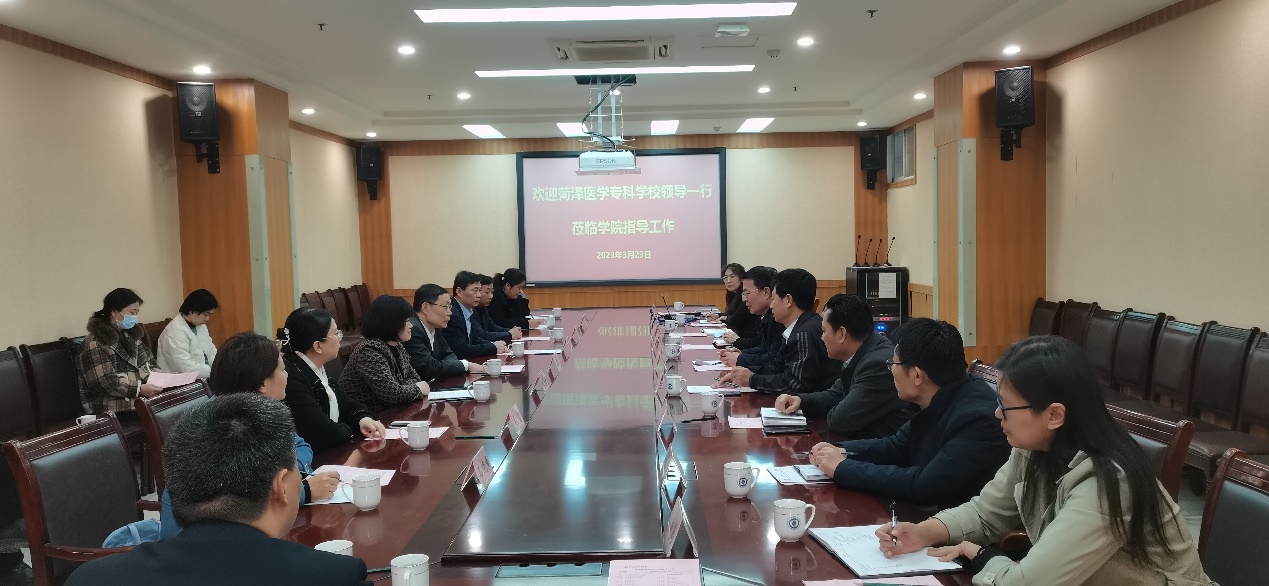3月23日,菏泽医学专科学校校长顾润国一行15人来学校考察交流。学校党委书记孔祥敏、副院长李允实出席座谈会,教务处及医学技术与护理系相关负责人参加座谈。