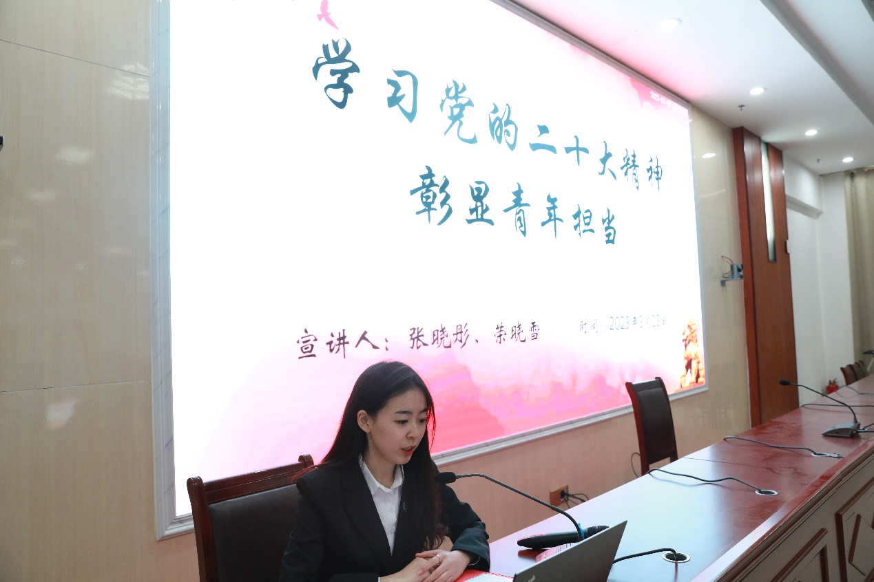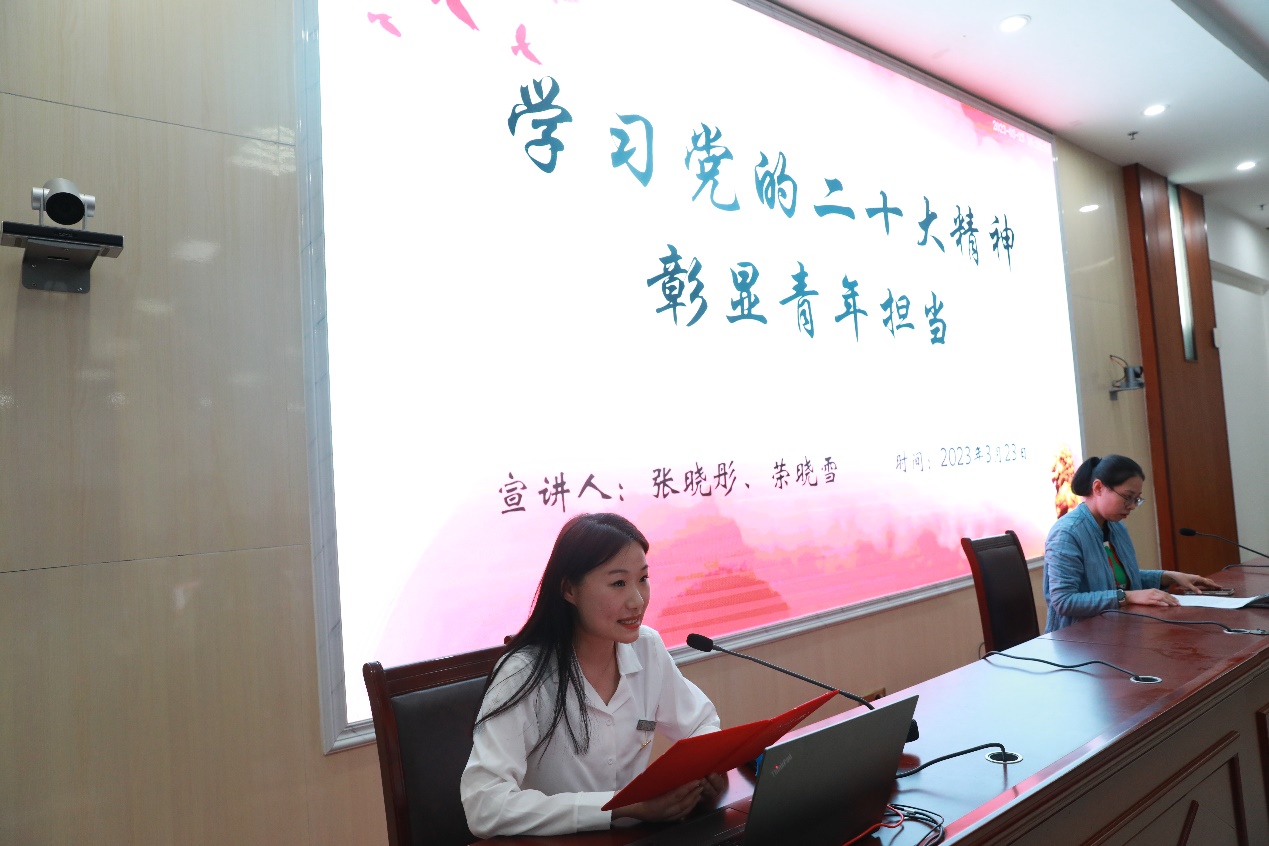 两名同学的宣讲以《弘扬党的二十大精神 彰显青年担当》为题,从“充分认识学习宣传贯彻党的二十大精神的重要意义”“全面准确学习党的二十大精神”“认真做好党的二十大精神的学习宣传”“坚持知行合一,贯彻落实好党的二十大作出的重大决策部署”等方面进行解读和诠释。