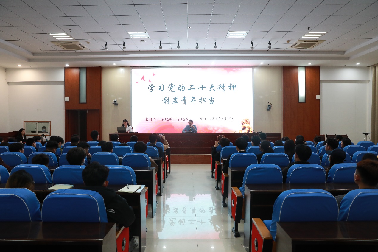 3月23日下午,学校组织开展党的二十大精神集中宣讲。青年马克思主义协会张晓彤、荣晓雪作专题宣讲。青年马克思主义协会及各系学生代表参加宣讲。