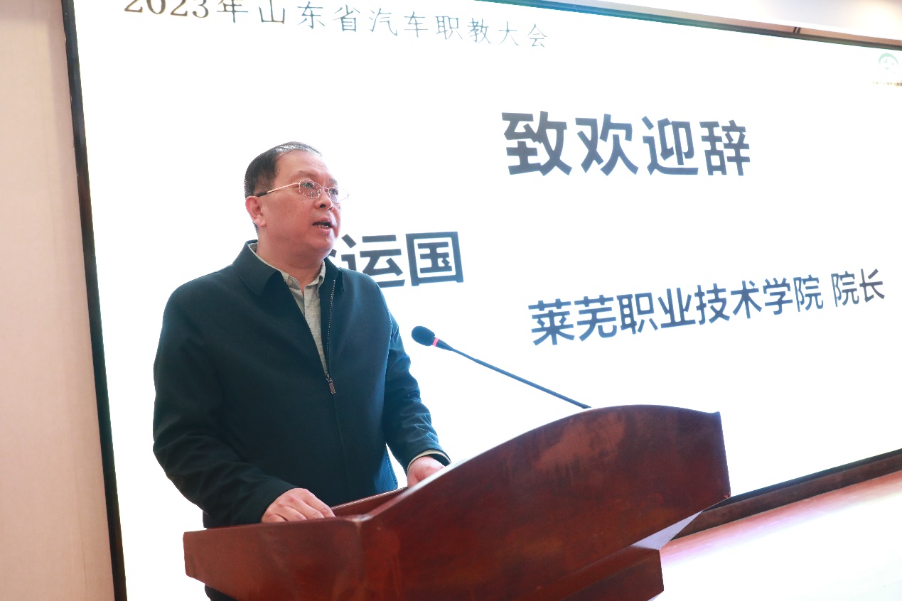 徐运国在致辞中指出,学校坚持以教促产、以产助教、产教融合、产学合作,多项突破性标志性成果走在了全国前列,综合办学实力和服务社会能力不断提升,开创了高质量发展的新格局。本次大会是在我省积极打造职教高地“升级版”、大力推动职业教育提质升级的关键节点上,深入贯彻落实党的二十大精神的实践行动。学校将认真研究山东省汽车制造及后市场产业发展的方向、战略和重点,及时优化调整专业建设,使其更加符合汽车制造产业行业转型升级的需求;立足区域经济社会发展对人才专业素质、业务能力的提升要求,创新人才培养模式,完善人才培养体系,让大批拥有较强生产技能和服务技能的高端人才进入汽车制造及后市场企业和产业;充分发挥职教集团内科研、人才、技术优势,共同研发科研项目,大力开展技术合作,促进科研成果转化应用;积极协调各方资源,面向省内广大汽车制造及后市场企业、职业技能培训机构及社会各界,做好人才培养、社会培训等各类社会服务工作,不断提高职教集团的服务能力和水平;通过举办交流研讨活动,积极搭建“政、行、校、企”互动的信息交流平台,形成人才培养的良性互动格局,为学生成长、成才、就业提供绿色通道。