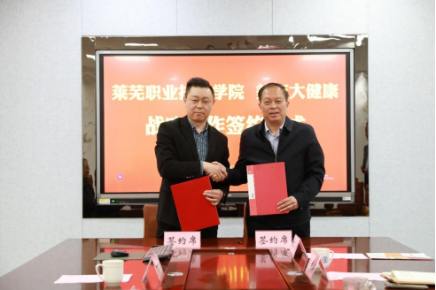 4月13日上午,学校与美年大健康莱芜分公司签署战略合作协议。学校党委副书记、院长徐运国,纪委书记付萍,副院长李允实,美年大健康莱芜分公司董事长罗友刚出席签约仪式。学校党政办公室、总务处负责同志及美年大健康莱芜分公司相关负责人参加活动。李允实主持签约仪式。
