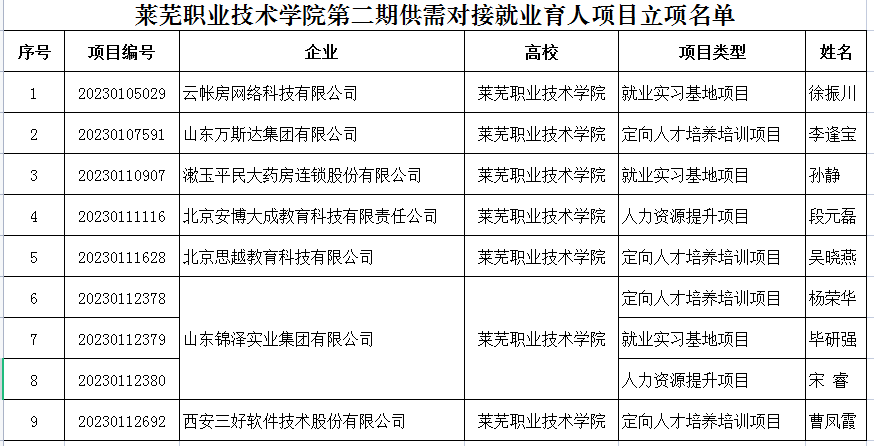 近日,教育部公布了《关于公布第二期供需对接就业育人项目立项名单的通知》,学校共9个项目通过审批、获准立项,其中定向人才培养培训项目4项、就业实习基地项目3项、人力资源提升项目2项。