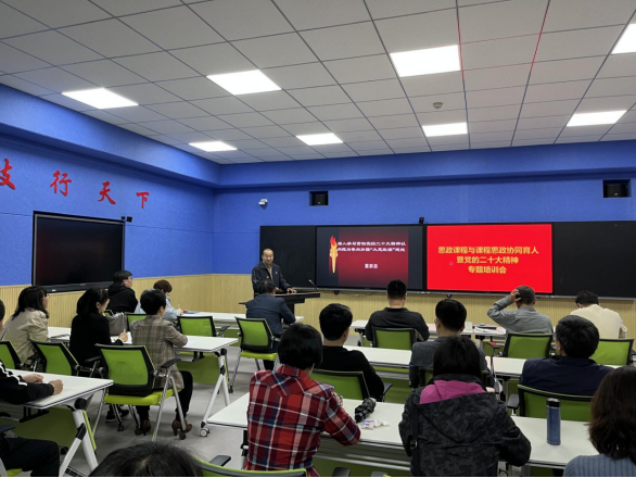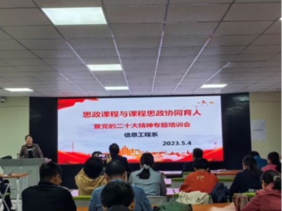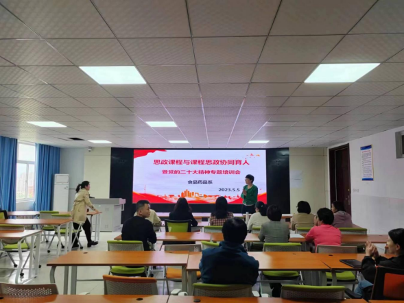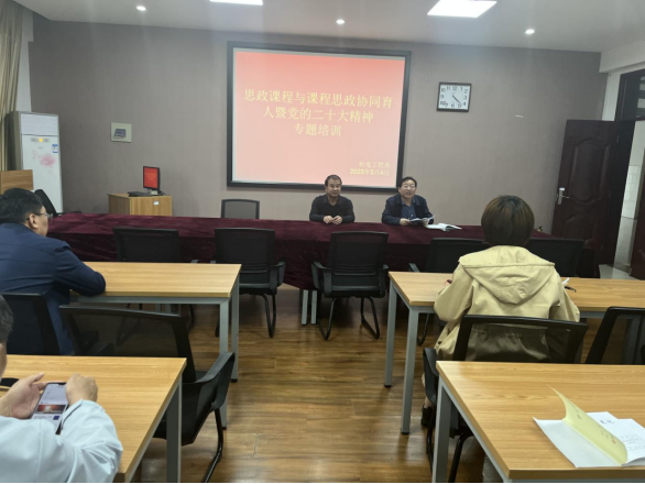 本次培训主要结合各系部课程特色确定培训主题和内容,由思政课教师对各系部开展针对性的培训辅导。培训会聚焦党的二十大精神内容,紧密围绕课程思政建设,引导广大教师将党的二十大精神充分融入课堂教学的每一个环节,深耕大思政课,做好思政课程与课程思政协同育人,实现学科互补、紧密融合,同时加强课程设计,提高教学质量,不断推进党的最新思想、观点、论断进教材、进课堂、进头脑。