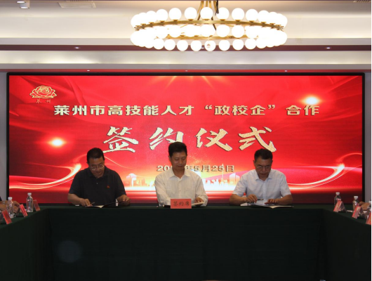 在“高端专家人才莱州行”活动中,李允实代表学校与莱州庚辰球墨铸铁有限公司签署高技能人才“校企”合作协议。