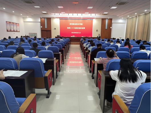 为深入学习宣传贯彻党的二十大精神,5月31日下午,学校开展党的二十大报告知识竞赛活动,本次活动由思想政治理论课教学研究部和党委学生工作部共同主办,共计9个系89名学生代表参加竞赛。