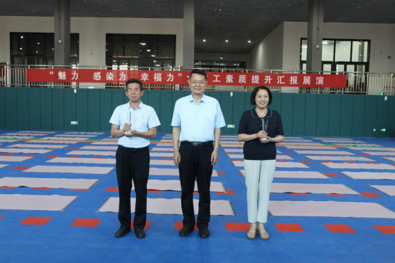 6月14日下午,由工会组织的女教工瑜伽比赛暨“魅力 感染力 幸福力”女教工素质提升汇报展演活动在学校文体中心举行,党委书记孔祥敏,纪委书记、监察专员付萍,副院长邹翠兰出席活动并为获奖单位颁奖。来自学校机关、各系部的12支代表队参赛,近百名师生现场观看了比赛。