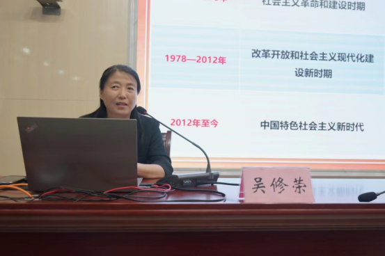 6月20日下午,学校举行学习贯彻习近平新时代中国特色社会主义思想主题教育读书班(第四专题)专家辅导报告会,思政部教研室主任吴修荣教授作题为《中国式现代化--中国走向成功的密码》专题辅导报告。学校党委班子成员、各单位班子成员、党支部书记现场聆听辅导。