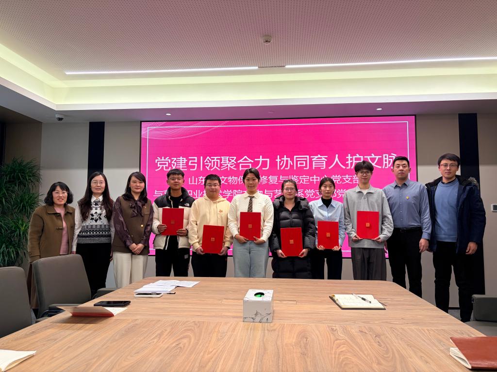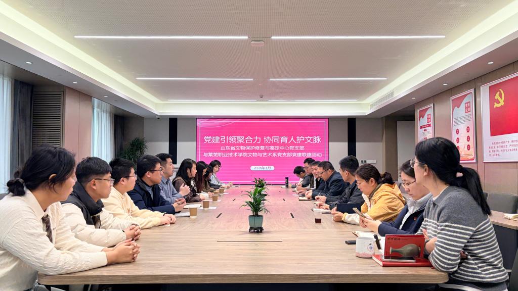 1月26日,学校文物与艺术系党支部与山东省文物保护修复与鉴定中心党支部以“党建引领聚合力 协同育人护文脉”为主题,联合开展党建联建活动。双方通过成果分享、人才认证、专题研讨、实地研学等多元形式,深化党建与业务融合,聚焦高技能人才集群计划落地要求,共同探索文物保护领域“校地协同、产教融合”育人新模式,为山东文化遗产保护传承注入人才动能。