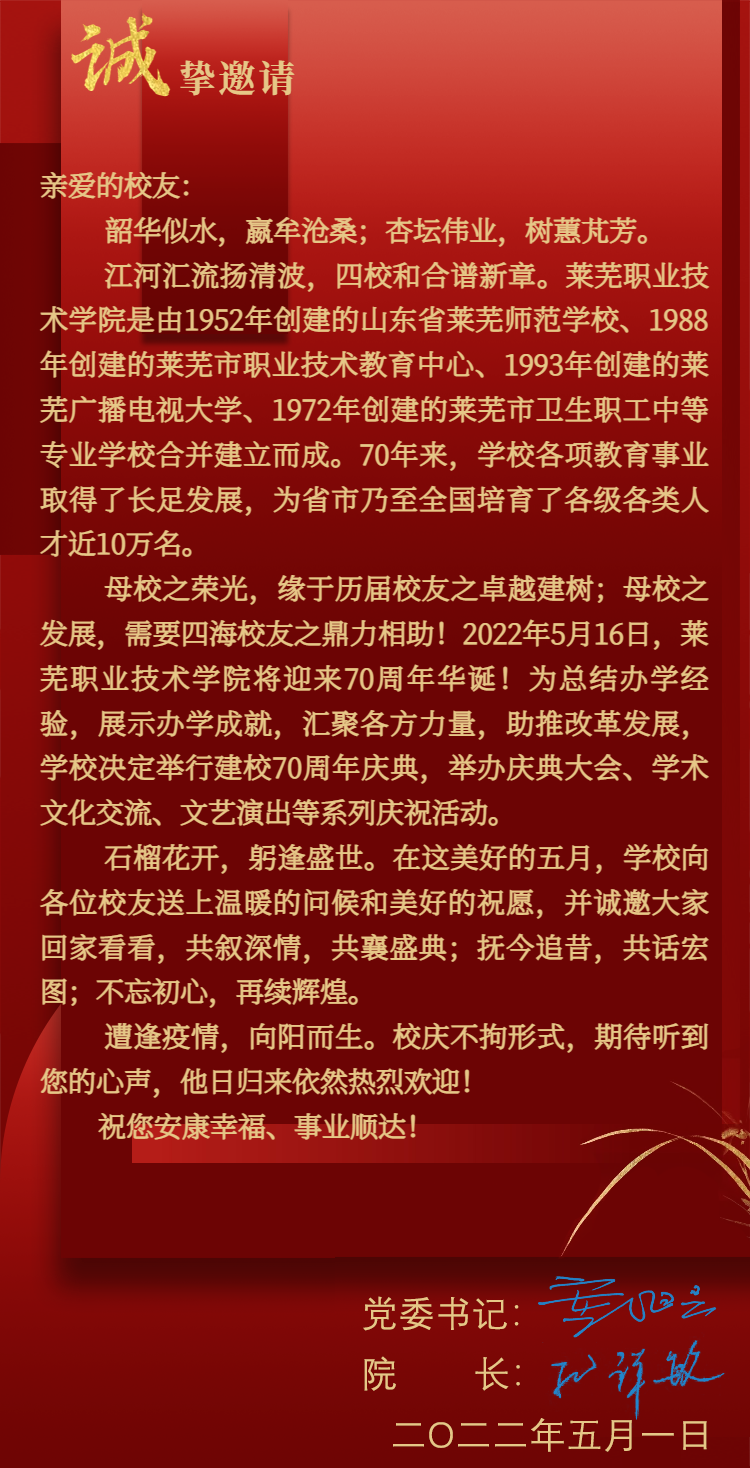 beat365在线唯一官网70周年校庆邀请函