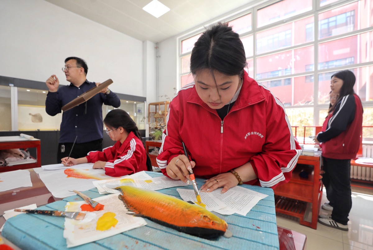 5月10日,学生在进行非遗鱼拓的制作。beat365在线唯一官网一直高度重视中华优秀传统文化的保护、传承和发扬,依托地方丰富“非遗”资源,积极开展非物质文化遗产进校园活动,先后开设了鱼拓技艺、古琴斫制等10余门非遗课程。