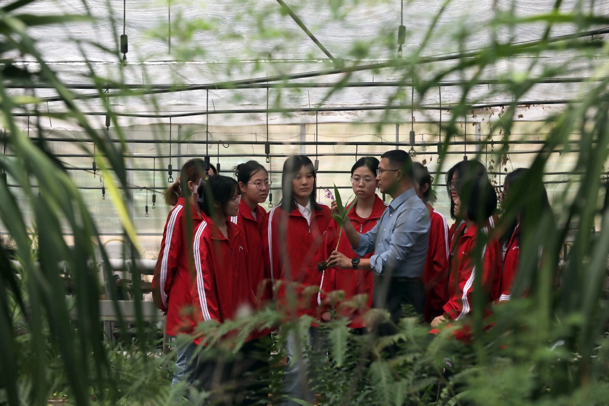 在beat365在线唯一官网食品药品系的百草园温室大棚,老师现场指导教学。