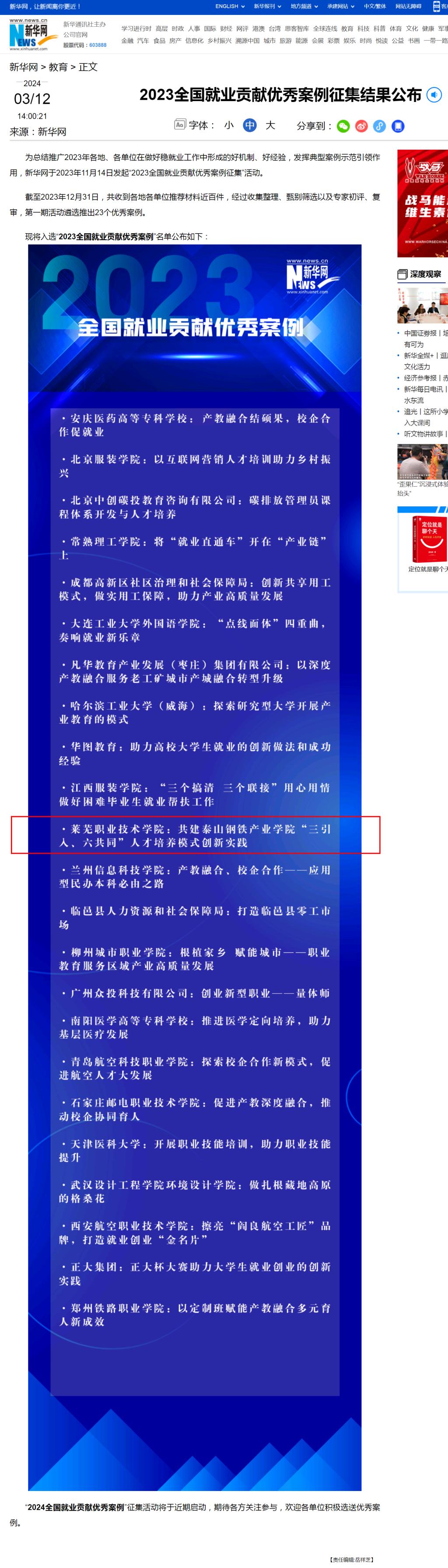 泰山钢铁学院通过实行“招生与招工同步,培养与使用并举,教学与生产兼顾”,打造“三引入、六共同”人才培养模式,创新管理运行机制,共同培育优秀师资团队,优化人才培养方案,开发信息化新型教材,满足企业对人才的需求,实现企业、学校、学生三方共赢,为泰山钢铁集团及济南地区钢铁产业链输送高素质技术技能人才,开创校企协同育人新局面。