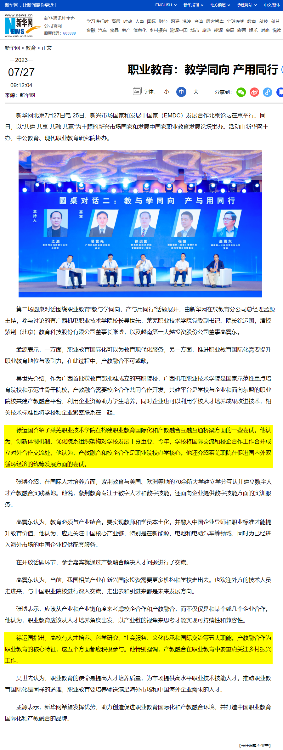 【新华网】职业教育:教学同向 产用同行