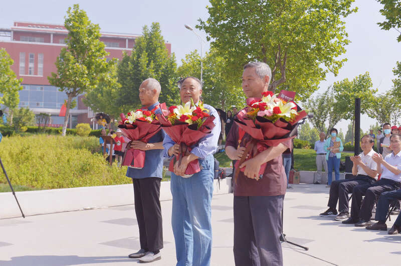 活动现场,新党员向50年党龄的三位老党员代表献花,对老党员所做出的贡献表示衷心感谢。教师代表和学生代表先后上台发言。