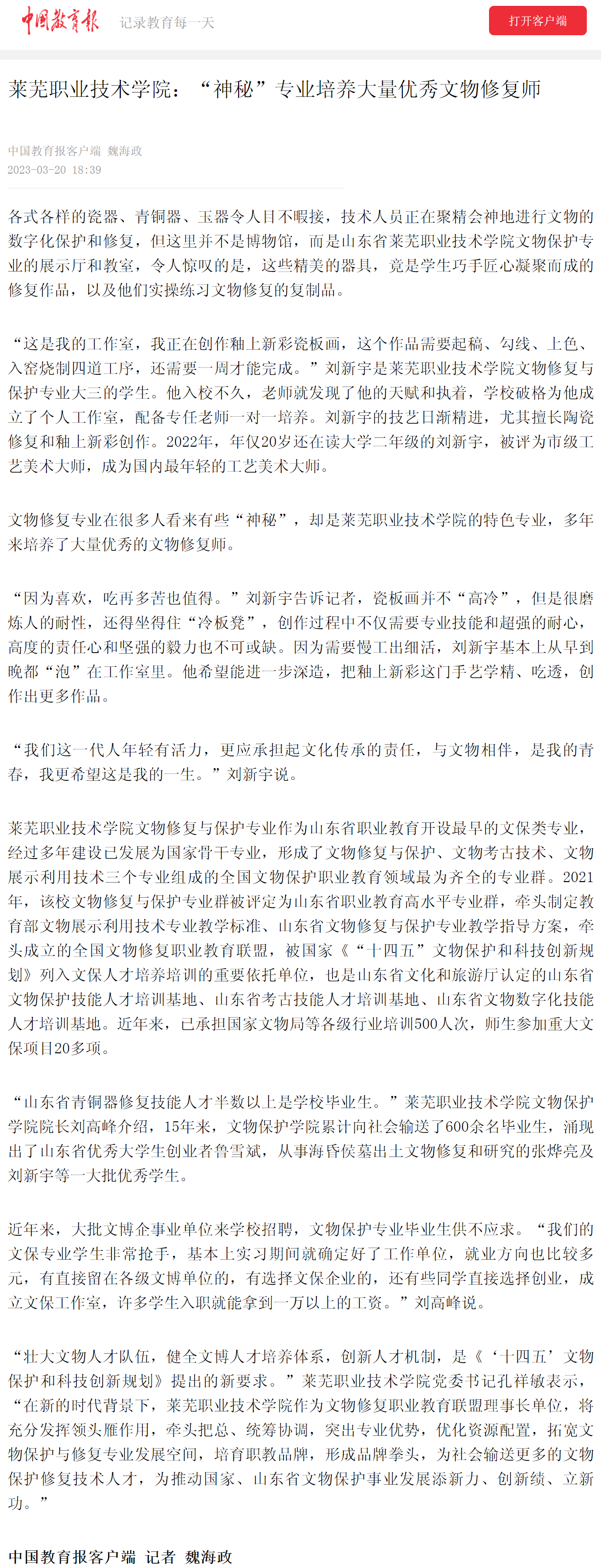 【中国教育报】beat365在线唯一官网:“神秘”专业培养大量优秀文物修复师