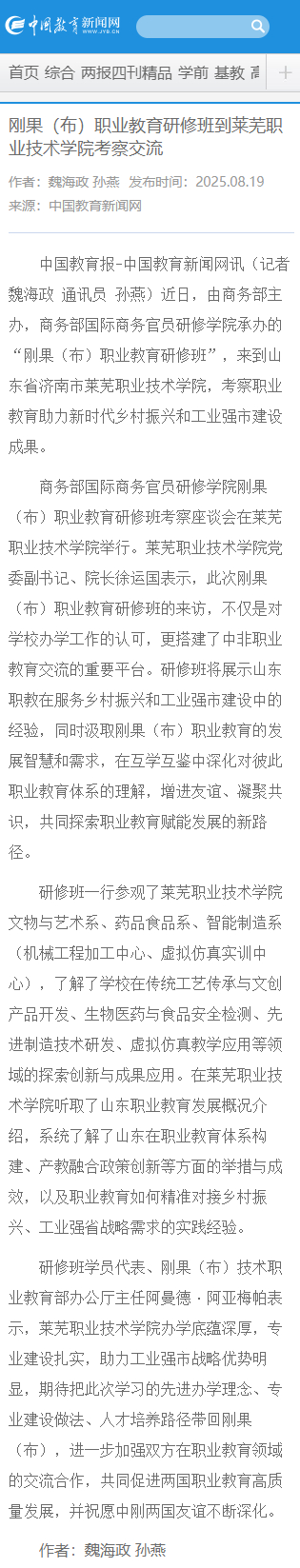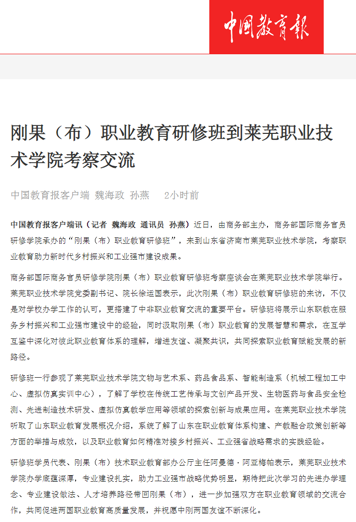 【中国教育报】刚果(布)职业教育研修班到beat365在线唯一官网考察交流