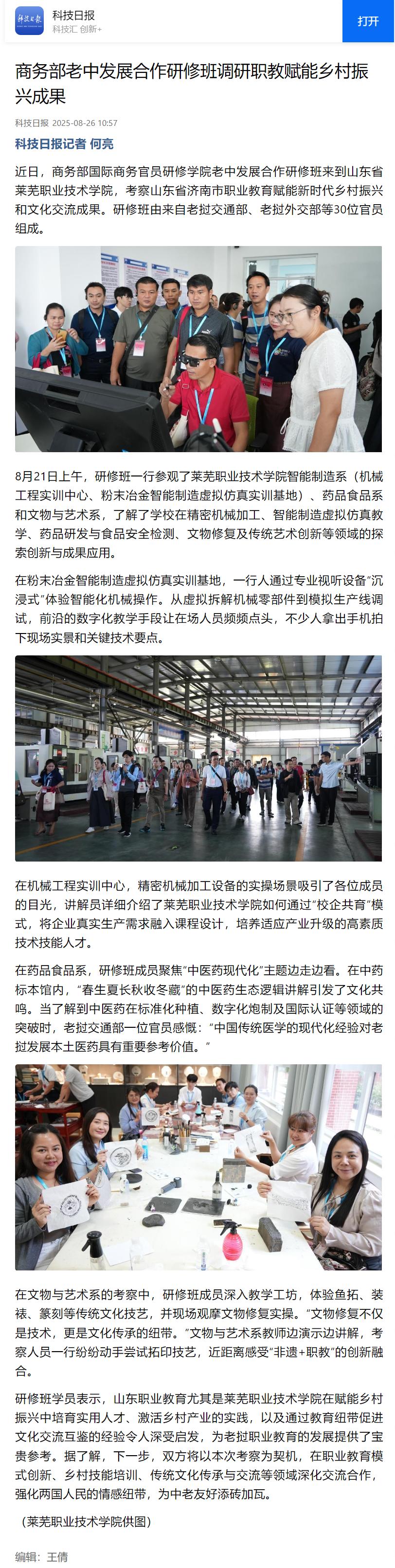 【科技日报】商务部老中发展合作研修班调研职教赋能乡村振兴成果