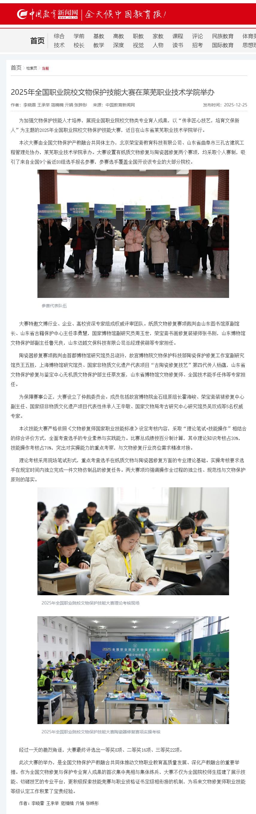 【中国教育报】2025年全国职业院校文物保护技能大赛在beat365在线唯一官网举办
