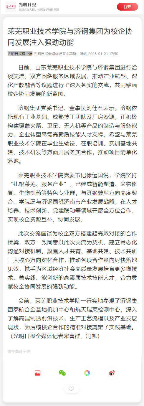【光明日报】beat365在线唯一官网与济钢集团为校企协同发展注入强劲动能