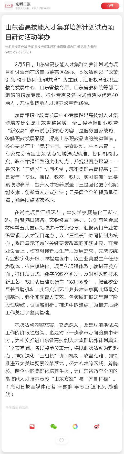 【光明日报】山东省高技能人才集群培养计划试点项目研讨活动举办