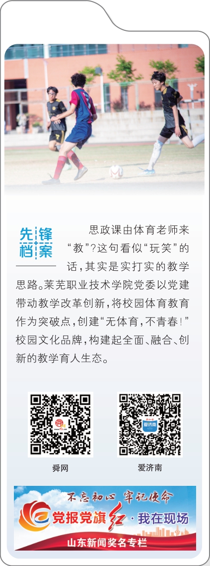 学校党委在探索如何将党建与教学融合时发现:党建、思政课、体育课之间有着千丝万缕的关系。学校的教师亓永顺这样理解三者:“党建与体育都有着提振士气、凝聚人心的作用,也都会产生个体带动群体的效应。可以说,它们有着异曲同工之处。”