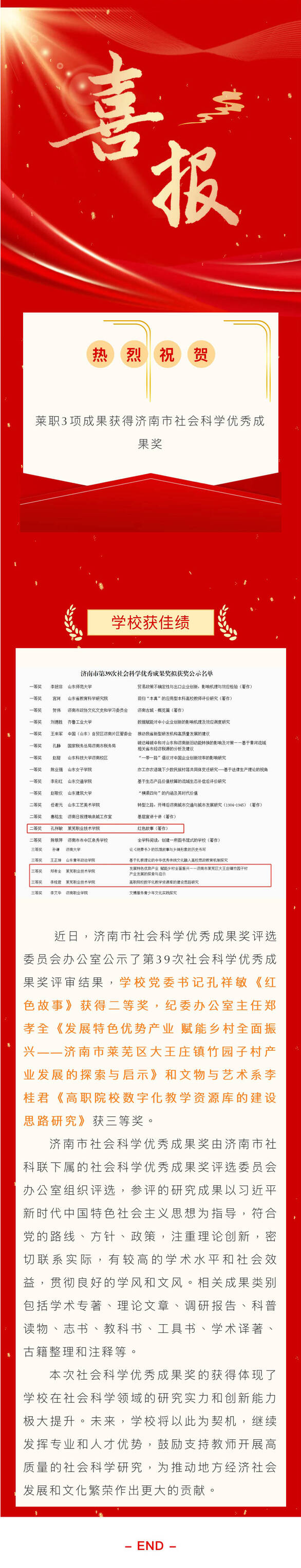 【济南广电】喜报丨莱职3项成果获得济南市社会科学优秀成果奖