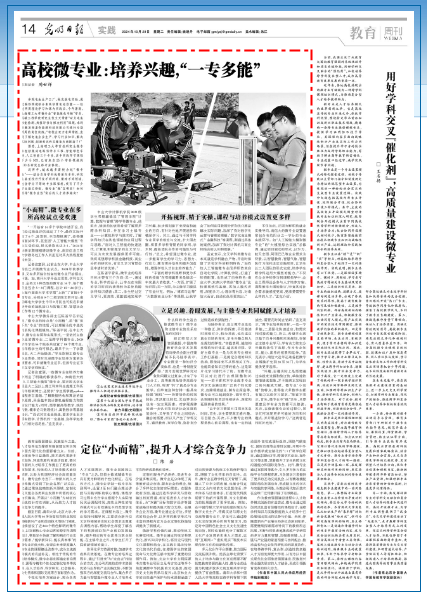 马陆亭表示,设立微专业也是一种修正、弥补的探索,不仅修读时间相对少,较为灵活,也有适应就业市场的变化、学生兴趣点和人生规划的弹性。“实践表明,越结构化强的知识体系,越容易迁移。学好主修专业一是为未来专业相关工作打基础,二是奠定合理的知识结构,即使将来不从事相关工作,也能具备知识迁移的能力,这是碎片化学习替代不了的。而微专业可以对此进行合理调整和补充——若不喜欢本专业或本专业所学无法满足更广泛的个性化需求,如跨领域就业、跨专业深造等,微专业可以起到弥补、调节作用,达到刚性和灵活性相结合、深度和延展皆备的效果。”