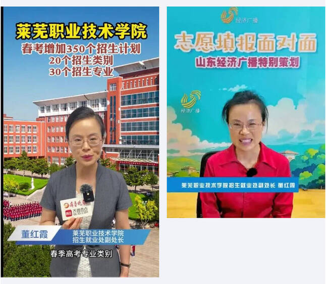 同时,学校充分利用网络平台的优势,参加了山东高考一点通的贺年片的录制,参加了山东省和济南市广播电台的招办负责人与考生面对面的节目访谈。并通过官方网站、微信公众号、抖音等新媒体渠道,发布了一系列招生宣传视频。以丰富多彩、生动形象的方式,全方位展示了学校的教学环境、师资力量、学生生活,让考生们更加直观地感受到了学校的魅力。其中,一些优秀校友的成功案例的分享更是激发了考生们对未来的憧憬和向往。