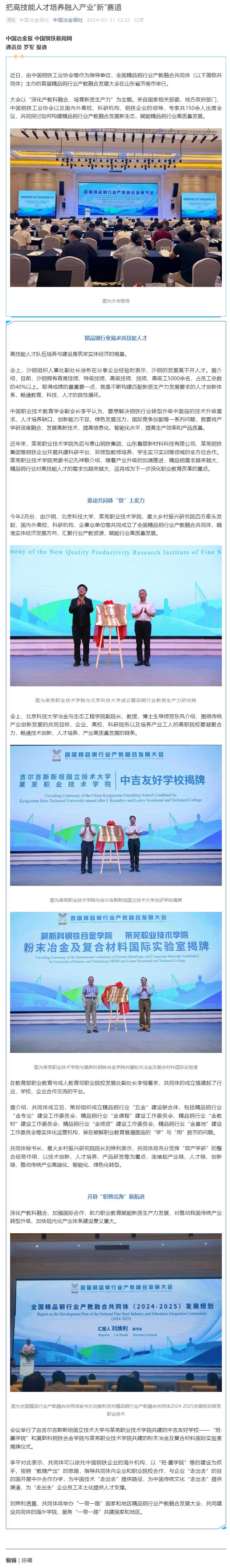 近日,由中国钢铁工业协会等作为指导单位,全国精品钢行业产教融合共同体(以下简称共同体)主办的首届精品钢行业产教融合发展大会在山东省济南市举行。
