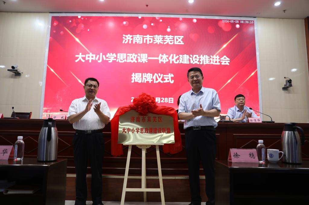 随后,孔祥敏和方威为莱芜区大中小学思政课建设联盟揭牌。