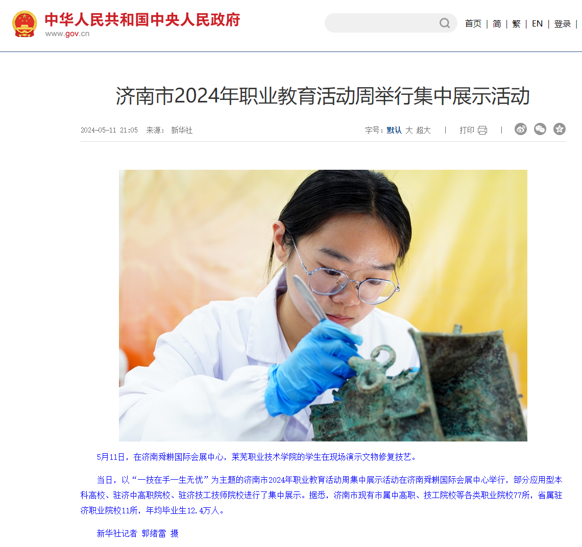 【中华人民共和国中央人民政府】济南市2024年职业教育活动周举行集中展示活动